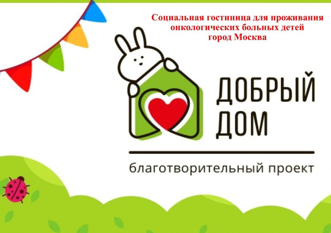 С 01.09.2020 в г.Москве (ул.Нагорная, д.22, корп.1) действует социальная гостиница с бесплатным проживанием «Добрый дом» для онкобольных детей, которые приезжают на лечение из регионов.