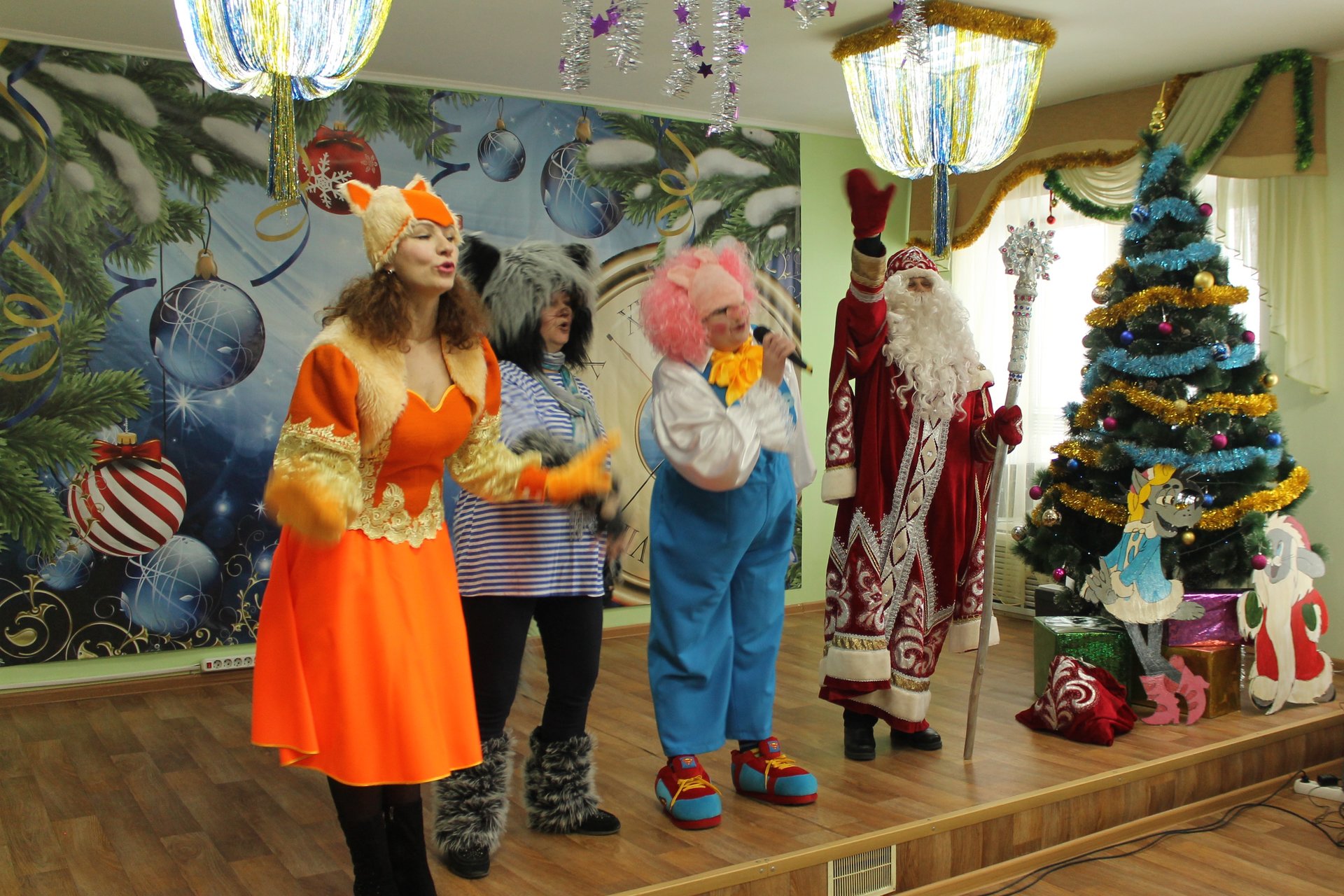 Сегодня артисты ДК с.Заречное поздравили получателей социальных услуг Копнинского ПНИ с наступающим Новым годом развлекательно-игровой программой. Забавный поросенок, хитрая лиса, волк и конечно Дед Мороз веселили ребят новогодними шутками, стихами и танцами.