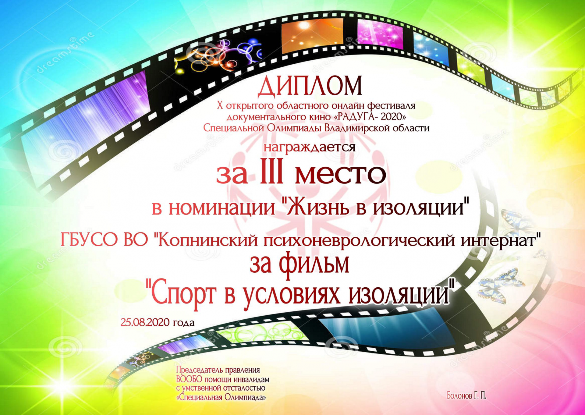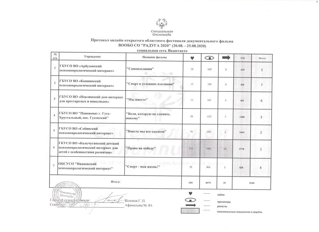 С 20.08.2020 по 25.08.2020г. проходил онлайн открытый областной фестиваль документального фильма "Радуга 2020".