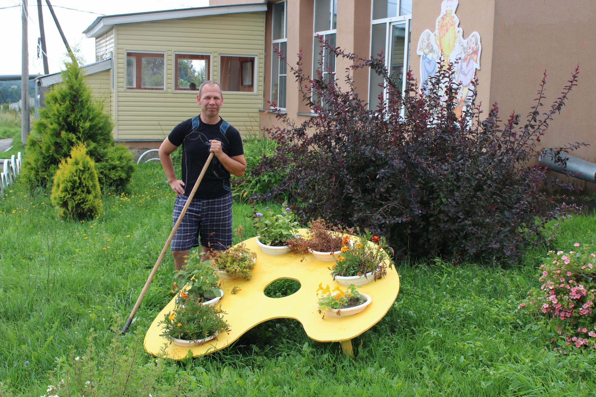 Сегодня получатели социальных услуг Петракова Наталья и Панев Николай занимались оформлением цветочной палитры.